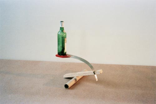 Peter Fischli: The little book of questions, includes the question: ‘Do I suffer from good taste?’ In the ‘Equilibriums’ we were slightly relieved of the question of which object must be selected according to which criteria: it didn’t matter whether the colour of the cigarette lighter that establishes and maintains the balance is a nice green or not.
